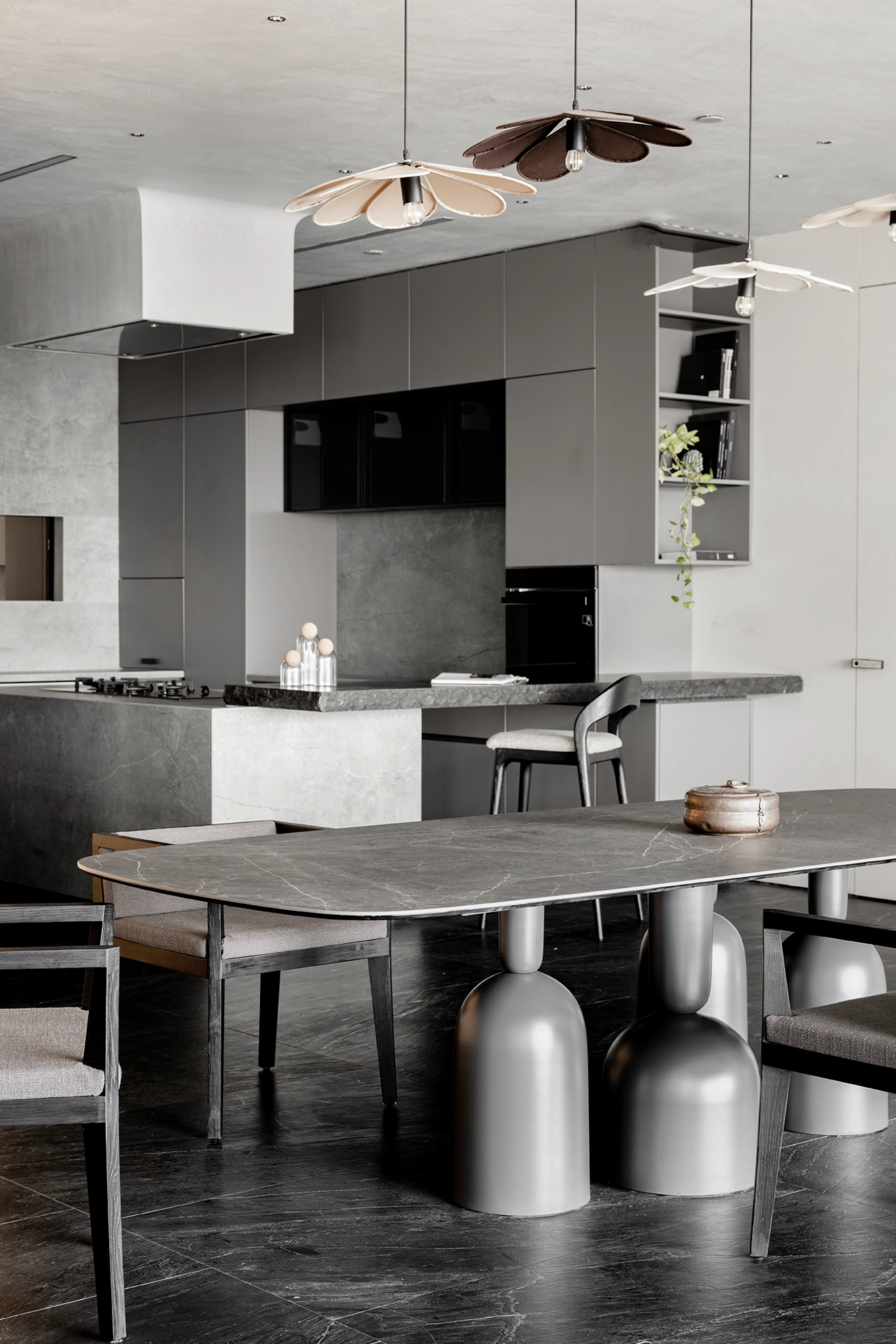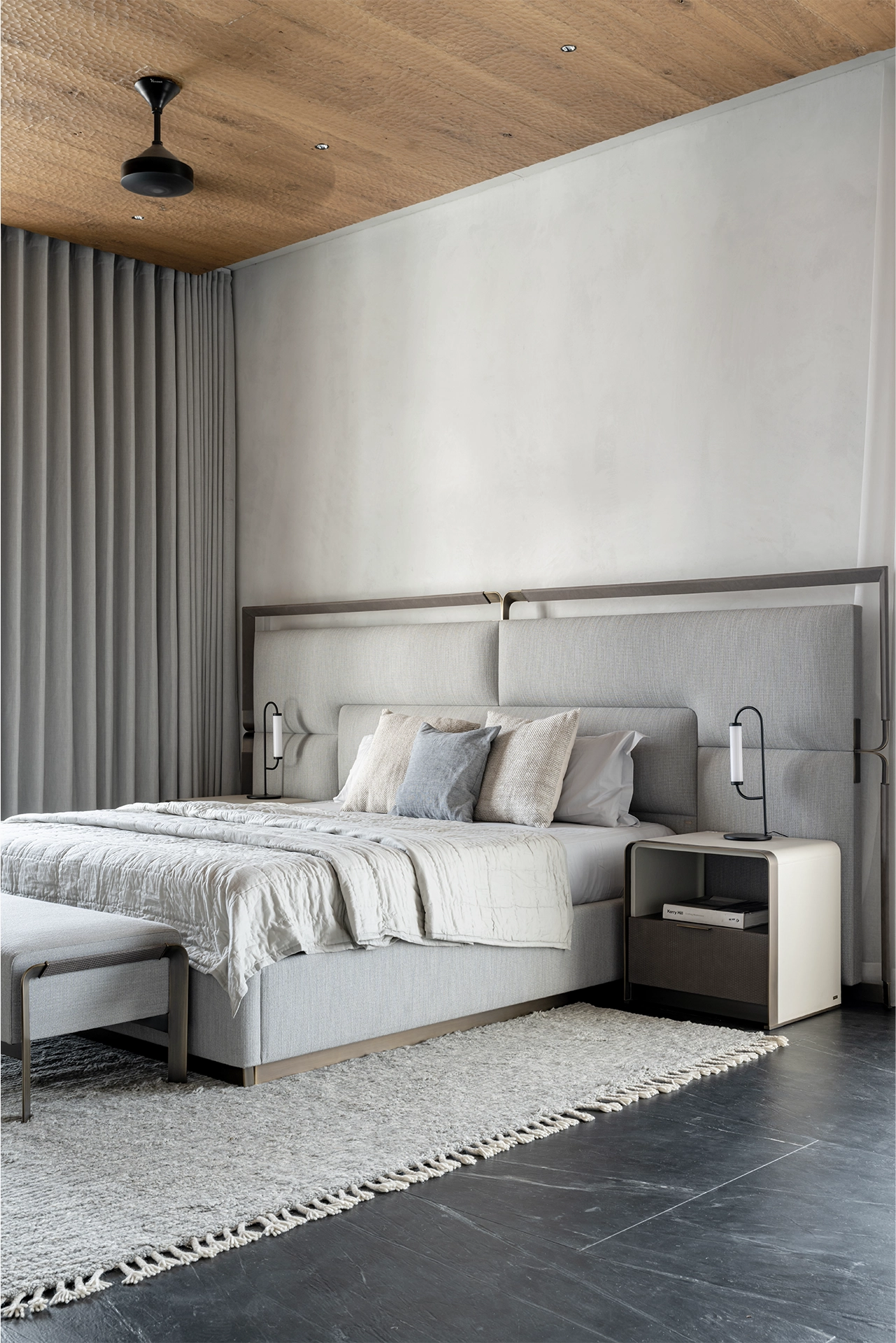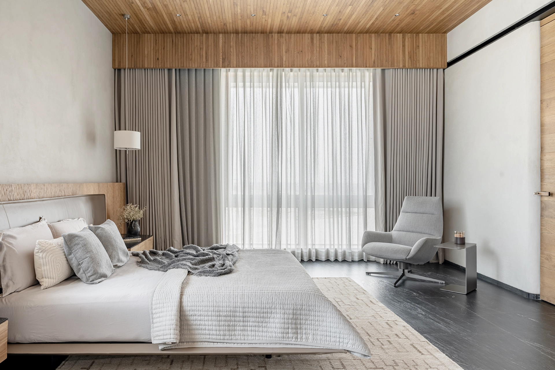 Details like door jams and window frames are eliminated, removing clutter and creating a more cohesive and serene atmosphere. Even the air conditioning slots were custom designed to blend seamlessly into the minimalist aesthetic.