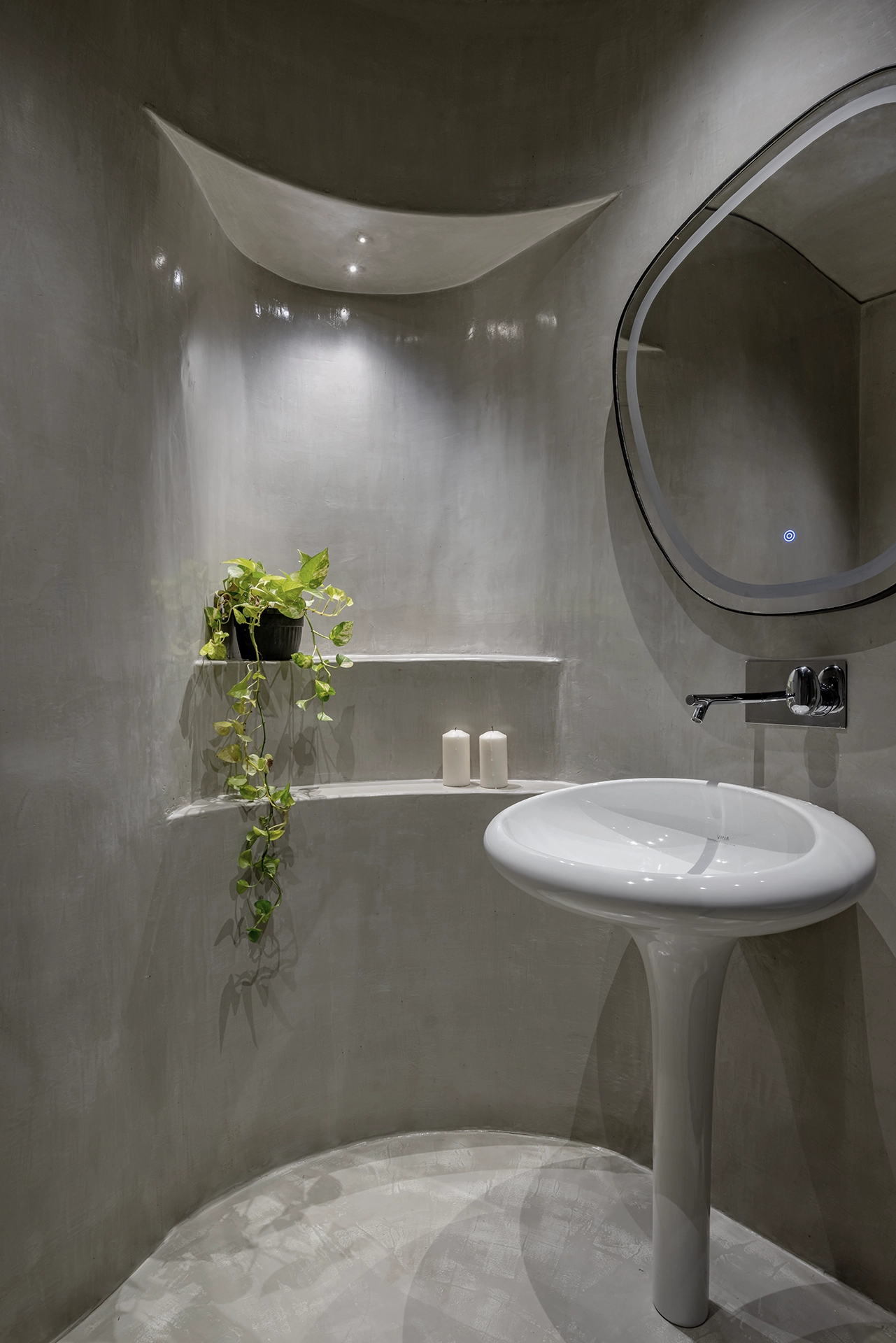 Our goal was to create a space that would feel like a sanctuary from the outside world, a place where the user could retreat and find inner peace. The cave-like foyer would be the first step in that journey, a reminder of the power of thoughtful interior design to promote a greater sense of peace and well-being.